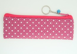 P star D pink special pencil bag, a dark pink cotton fabric with big and small white star prints