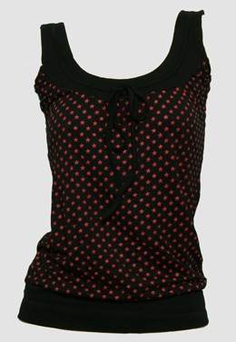 Star basic black red fashion top, basic ladies round neck top with red stars.